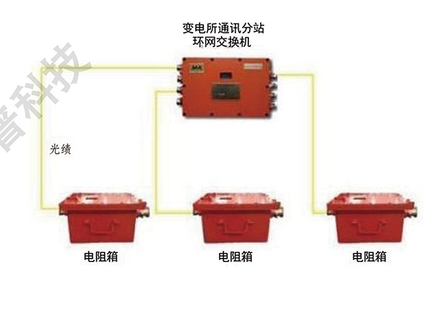 项目实施中电阻箱与变电所通讯分站距离大于1000m且周围没有4G/wifi信号时适用,分站可直接铺设光缆接入变电所通讯分站或矿环网。