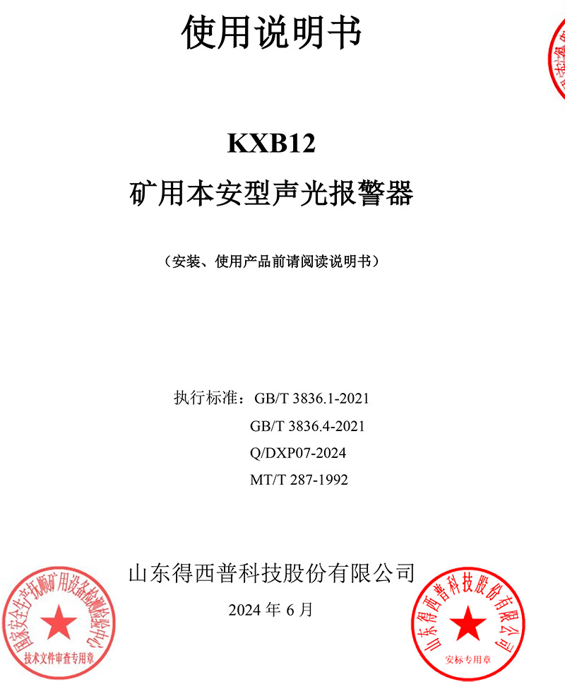 KXB12矿用本安型声光报警器(以下简称“报警器”)是矿用本安型,适用于煤矿井下有甲烷和煤尘爆炸危险场所。
